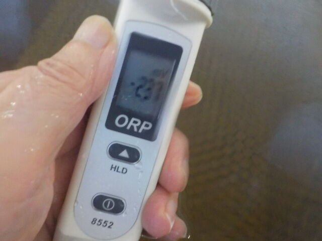 浴槽:温度38.7℃、pH9.03、ORP値は-195mvに収束した。