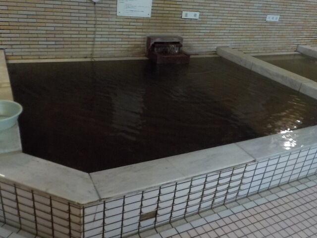 ウーロン茶色ほとんど透明の湯。注湯量は約20ℓ/分。知覚的には、モール臭・微弱タマゴ臭、微弱塩味。溢れた湯は湯縁からオーバーフローしている。