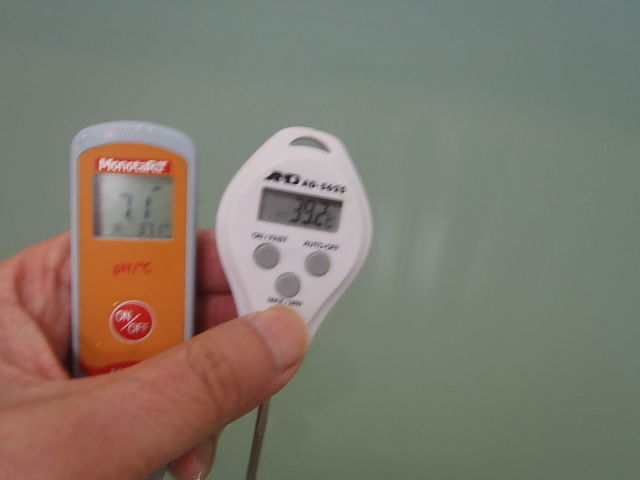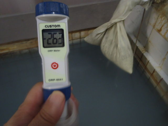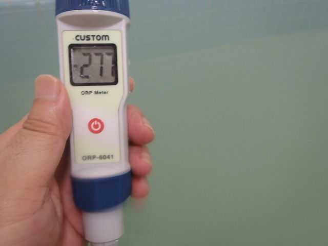 浴槽:温度39.2℃、pH7.1、ORP値は-277mvに収束した。