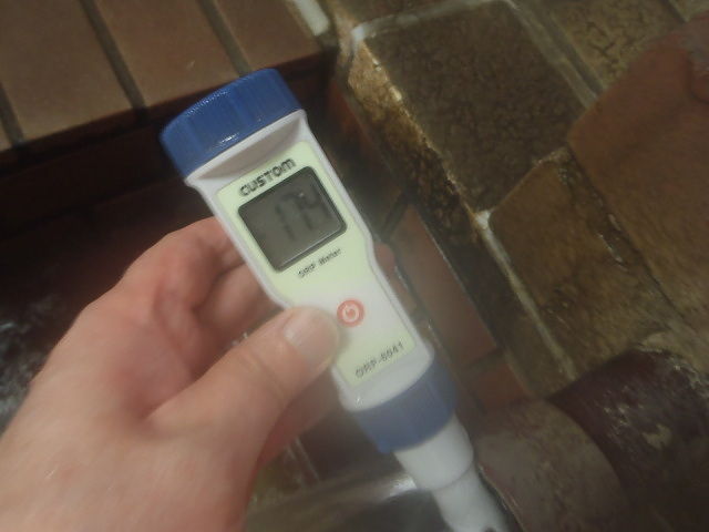 浴槽:温度42.0℃、pH値7.7、ORP値は-49mvに収束した。
