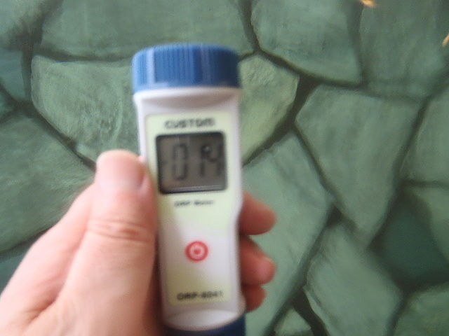 2014/4/4、16時20分~17時、浴槽内でORP計測。加水掛け流しで、塩素系薬剤未使用。