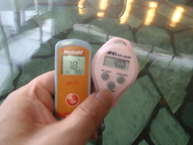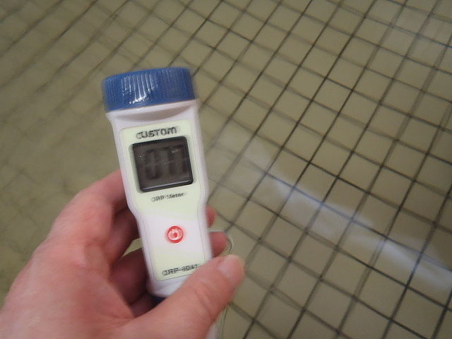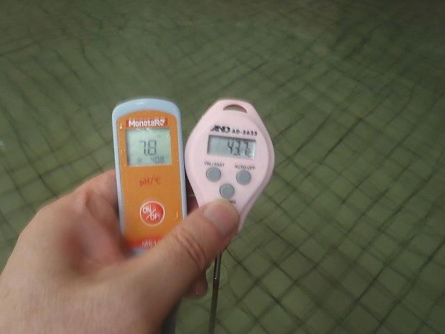浴槽:温度43.7℃、pH値7.8、ORP値は-28mvに収束した。