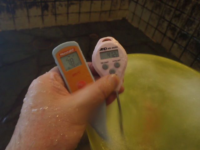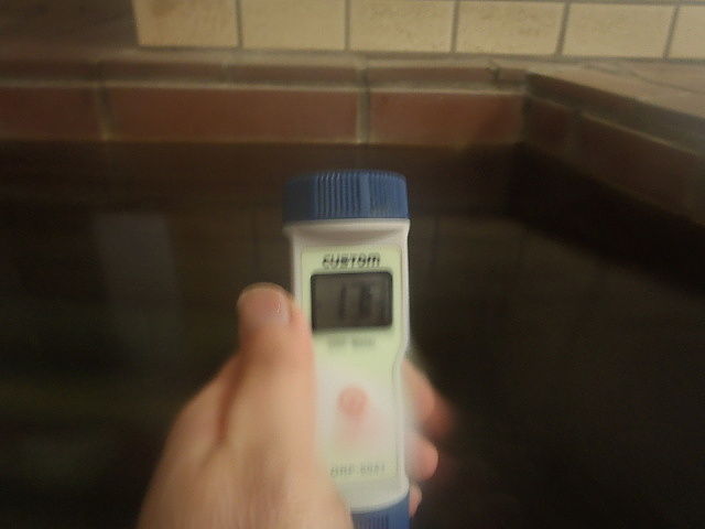 打たせ湯:温度41.2℃、pH値7.8、ORP値は-52mvに収束した。