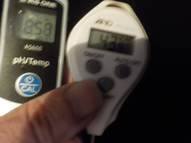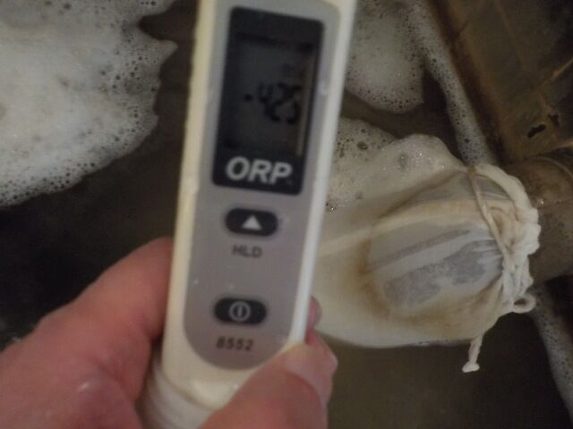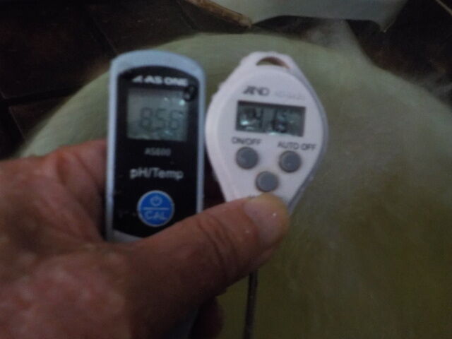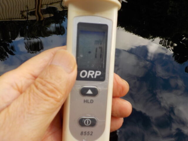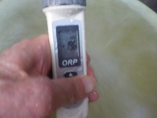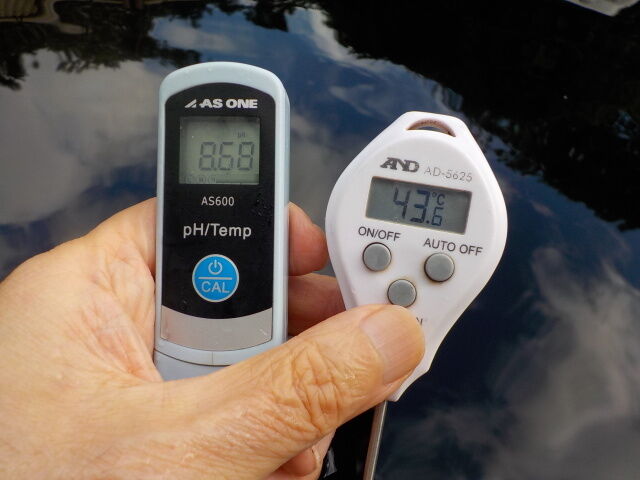 浴槽:温度43.6℃、pH8.68、ORP値は-17mvに収束した。