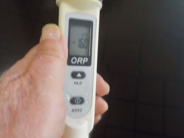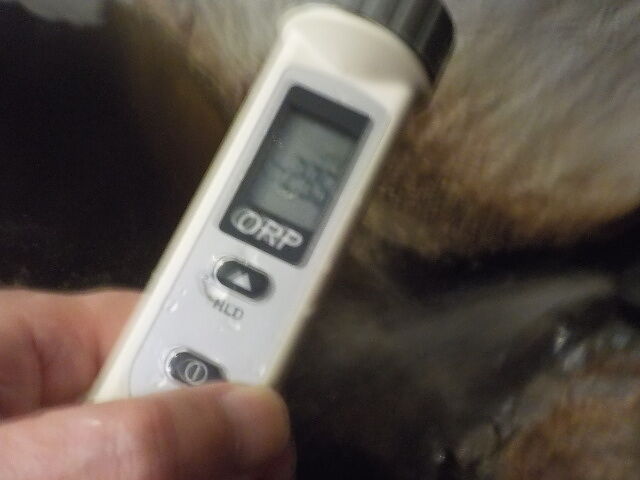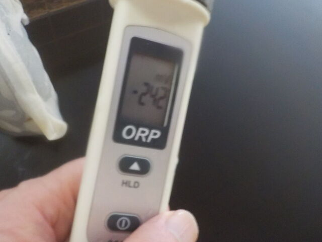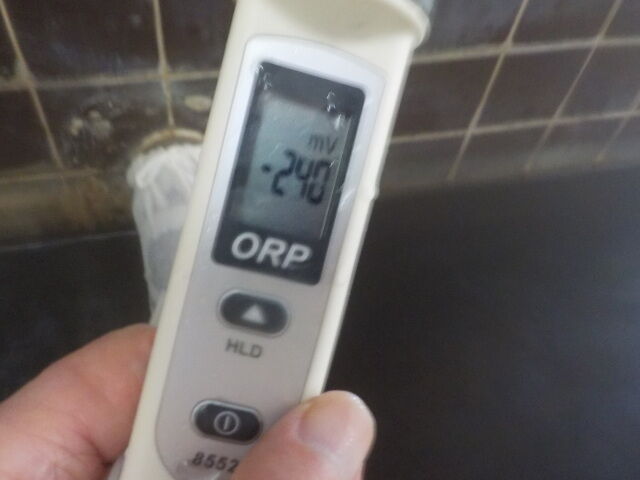 浴槽:温度43.9℃、pH8.58、ORP値は-160mvに収束した。