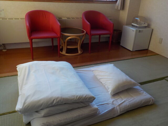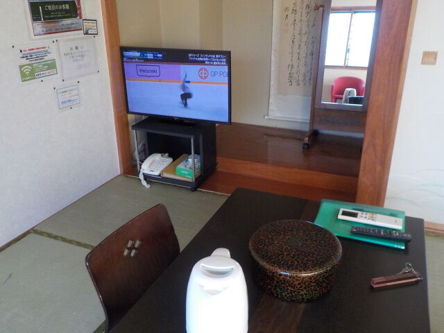 案内されたのは8畳和室(禁煙)。フリーWi-Fi利用可(電波弱い)。
