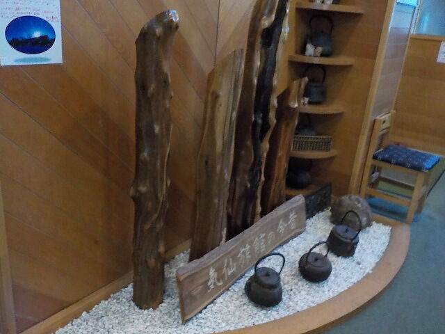 気仙旅館時代に使われていた鉄瓶、写真などが展示されている。