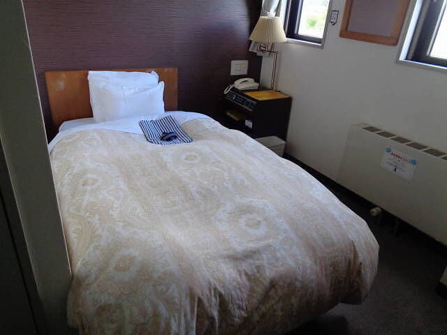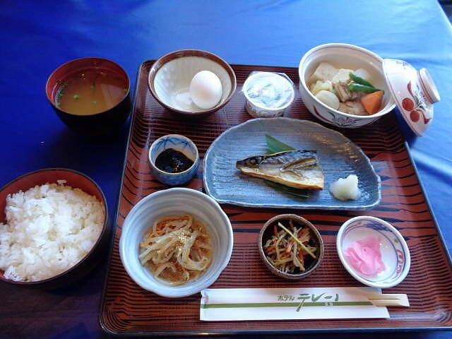 食事は「レストランあすなろ」でとる。宿泊当日、レストランは臨時休業のため、コンビニで弁当を購入。朝食時間7時~9時。チェックイン時に希望時間指定有り。