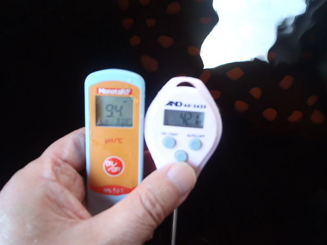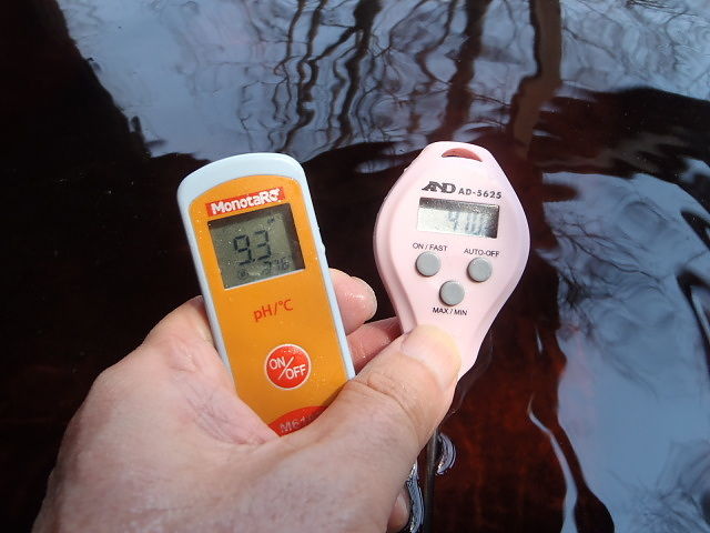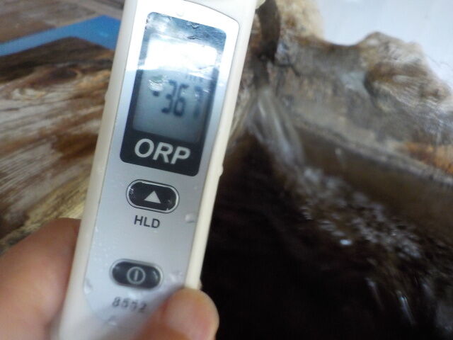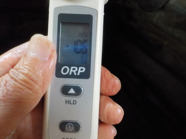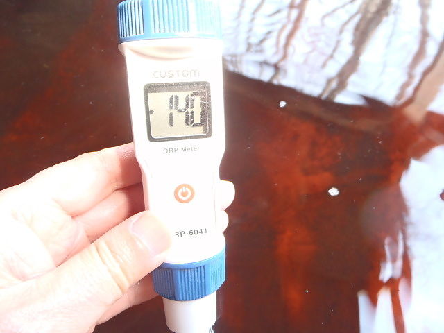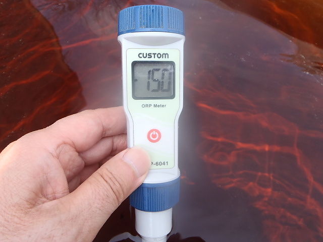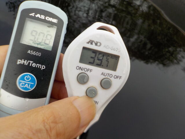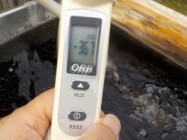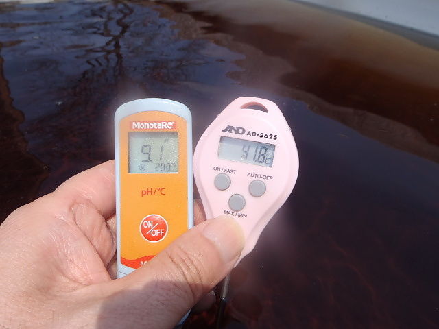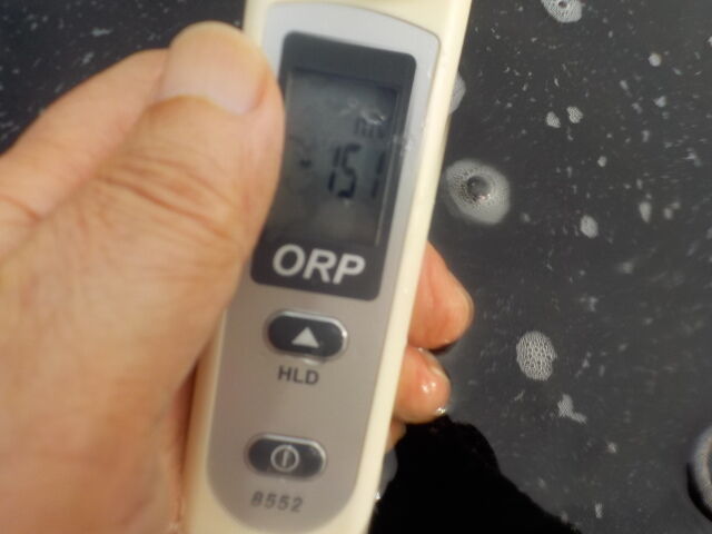 浴槽:温度39.7℃、pH9.08、ORP値は-92mvに収束した。