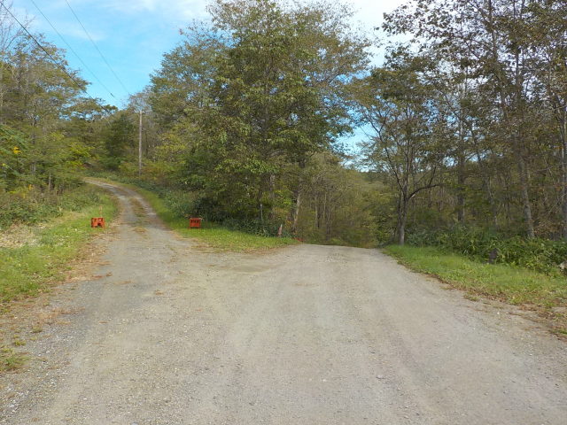 ゲートから約1kmのところで二股に分かれる。左からも行けるが、右の坂を下っていく。