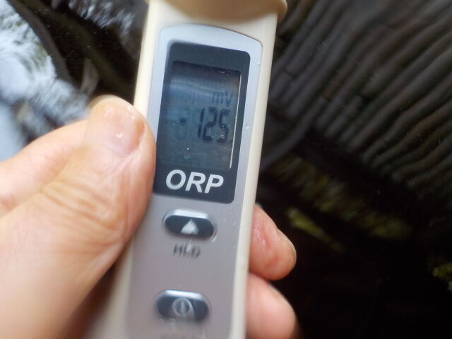 2022/10/6、13時5分~13時20分、浴槽内でORP計測。源泉100%掛け流しで、塩素系薬剤未使用。