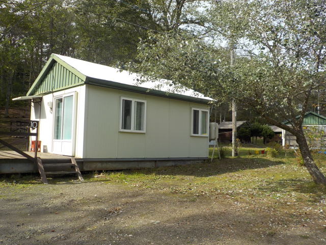 30万坪の広大な敷地に、キャンプ場、ログハウス、コテージを配置している。会員制の自然体験村だが、ビジターも利用できる。D型ハウスの管理棟が受付になっている。