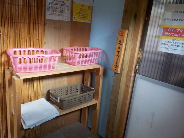 ドアを開けてすぐ脱衣所がある。壁に温泉分析書を掲示。