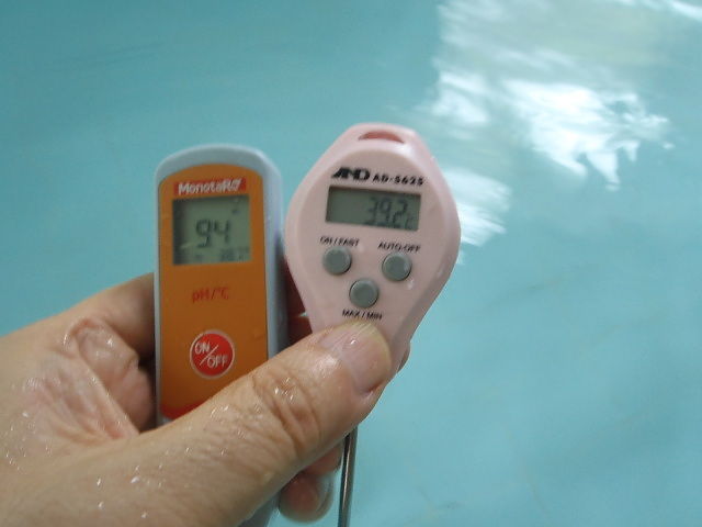 浴槽:温度39.2℃、pH9.4、ORP値は-171mvに収束した。