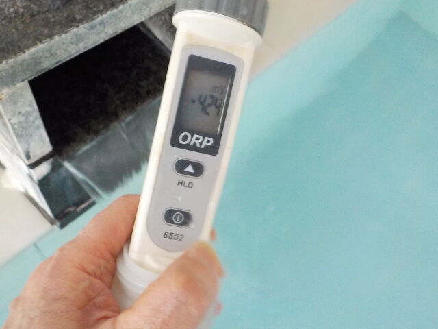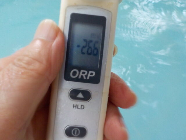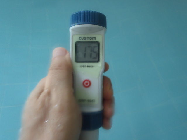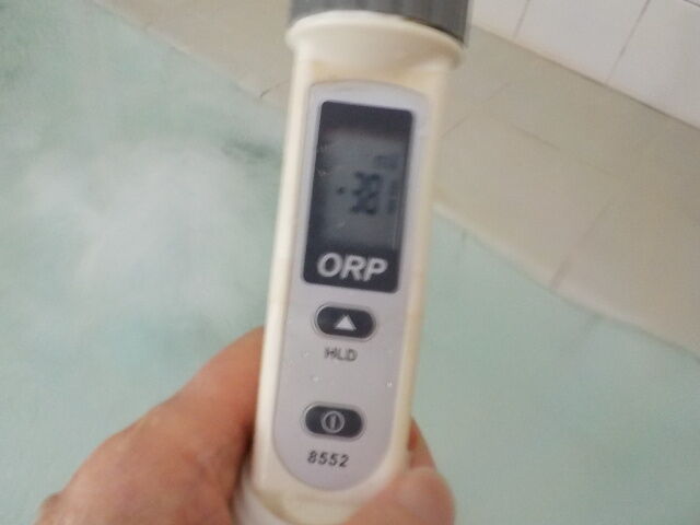 浴槽:温度35.9℃、pH9.48、ORP値は-175mvに収束した。
