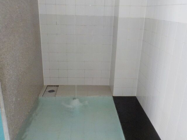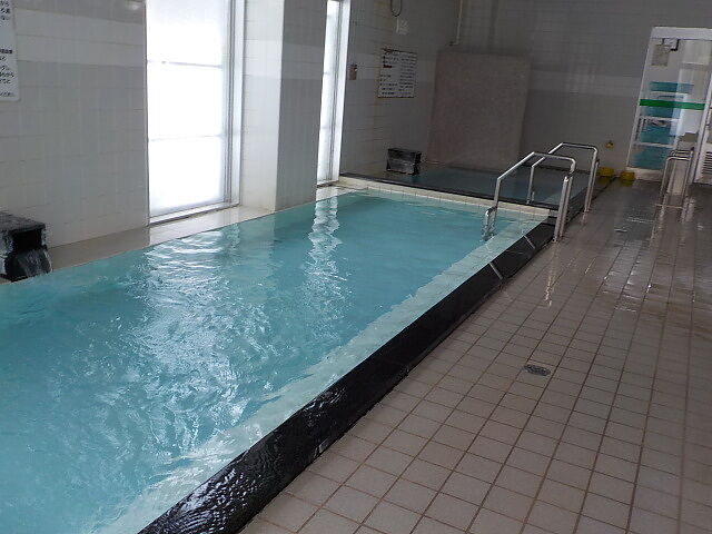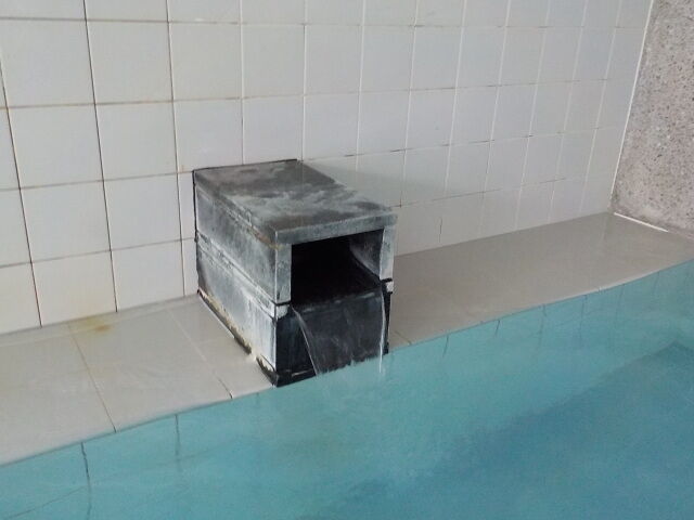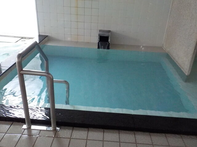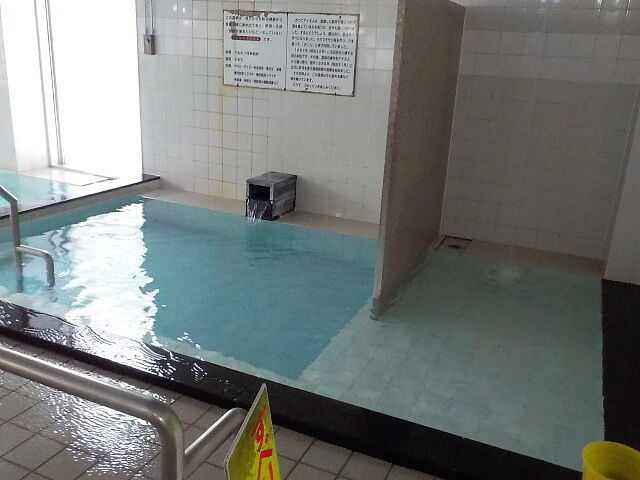 ほとんど無色透明の湯。奥側にバイブラが泡立っている。注湯量は約40ℓ/分。知覚的にはたまご臭味。溢れた湯は湯縁からオーバーフローしている。バイブラ稼動時は小浴槽のよう泡付きは少ないようだ。