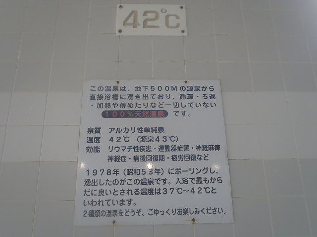 ほとんど無色透明の湯。注湯量は約30ℓ/分。知覚的には微弱たまご臭味。溢れた湯は湯縁からオーバーフローしている。ぬるめながら泡付きも良くつるつる感はすばらしい。