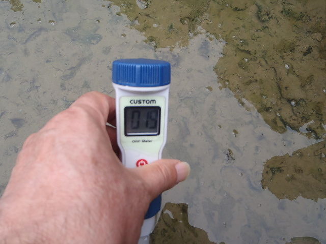 湯温33.5℃、pH7.0、ORP値は19mvに収束した。