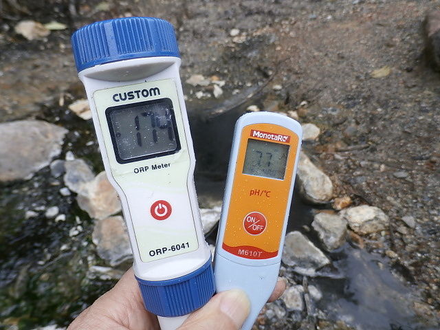 泉温80.1℃、pH7.7、ORP値は-174mvに収束した。