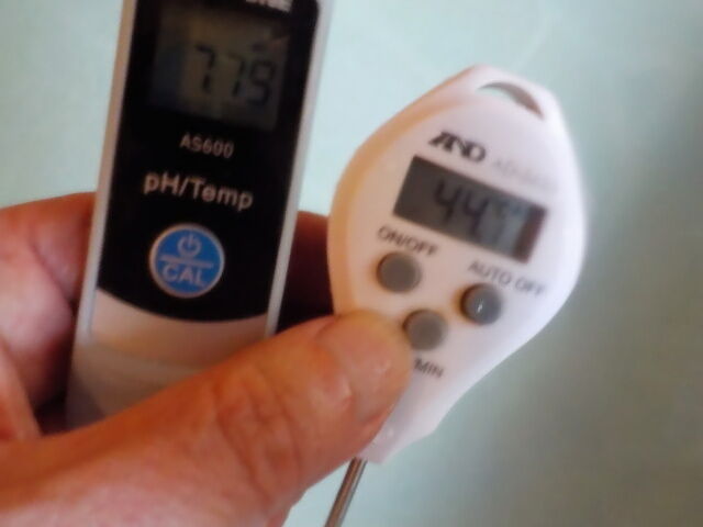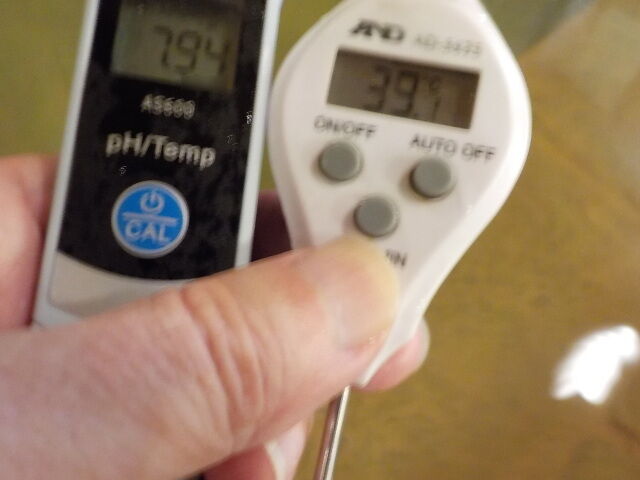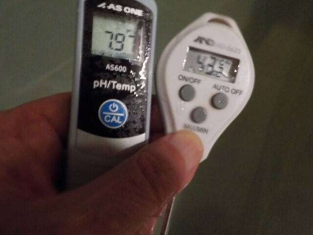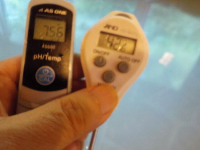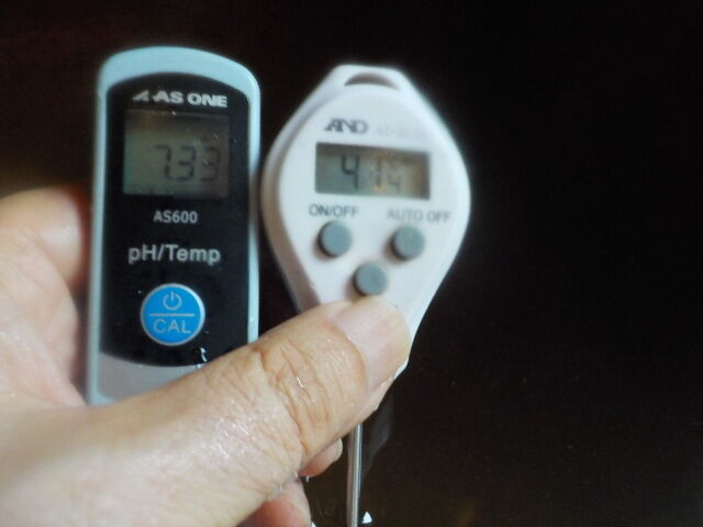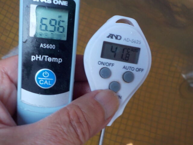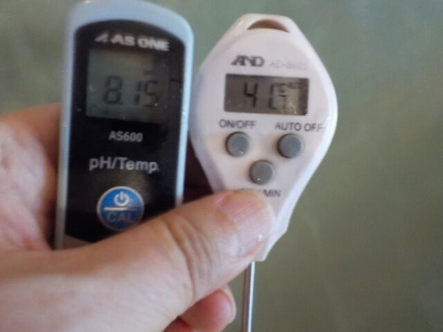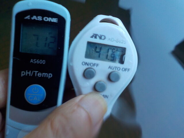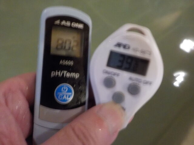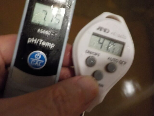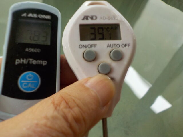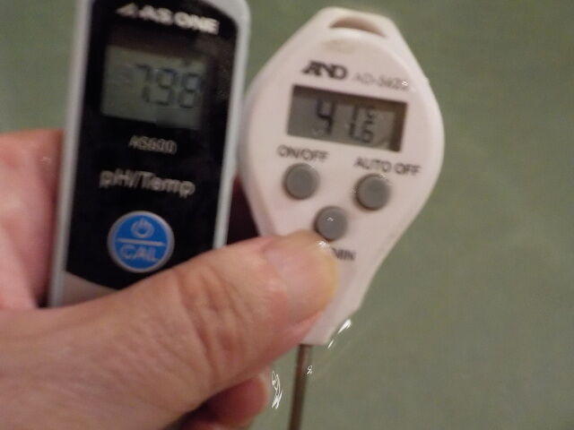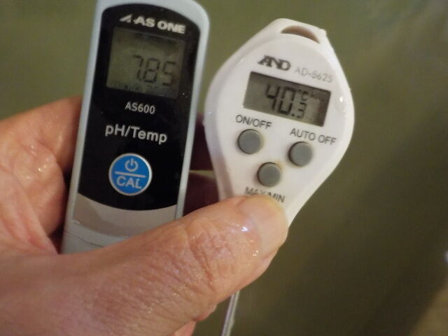 浴槽:温度39.1℃、pH7.94、ORP値は48mvに収束した。