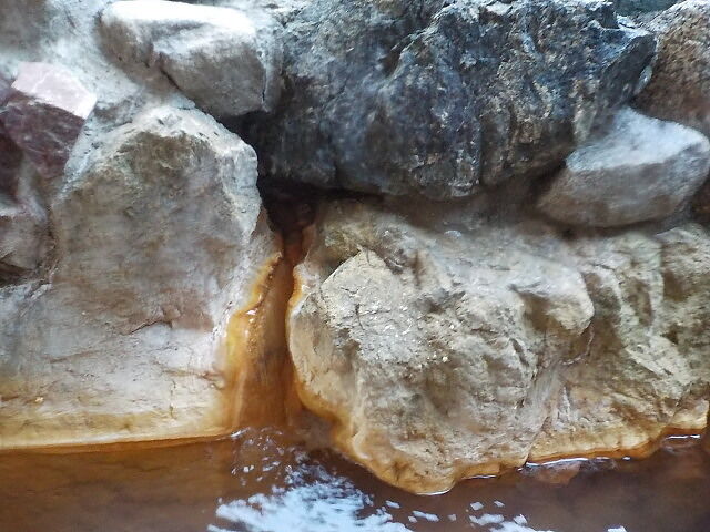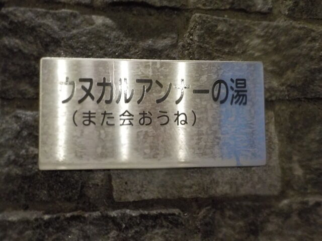 ウヌカルアンナー(アイヌ語で“また会おうね”)の湯は、浴室手前の湯船。浴槽半分は浅湯になっている。源泉10号・12号の混合泉利用。極微緑微濁の湯。壁面岩の湯口孔から約5ℓ/分注湯。知覚的には、微弱硫化水素臭、微弱塩味。溢れた湯は湯縁からオーバーフローしている。滑らかな肌触りでつるすべ感あり。2014/9/20の湯口温度は43.7℃で源泉分析書の45.9℃に近かったが、2020/10/23の湯口温度は64.3℃になっている。