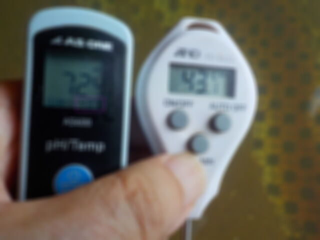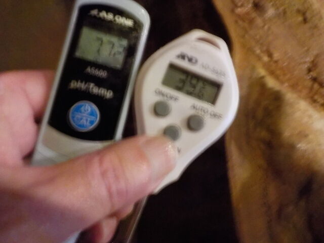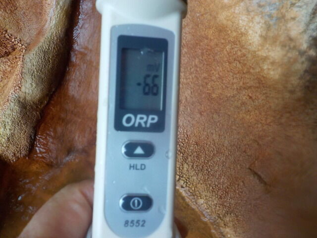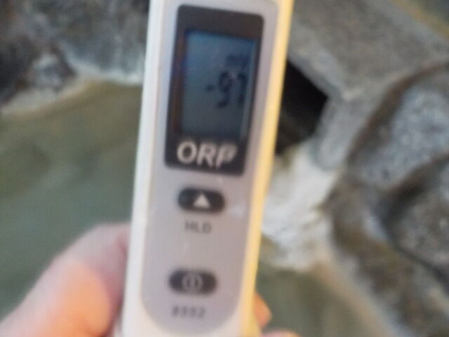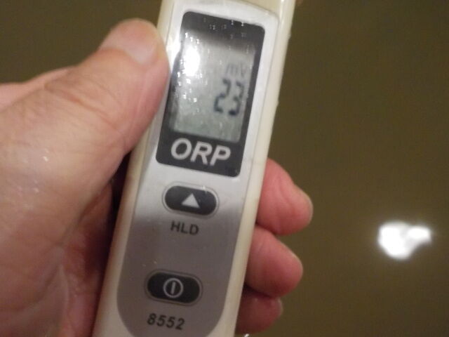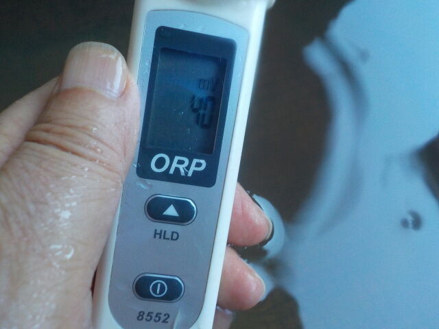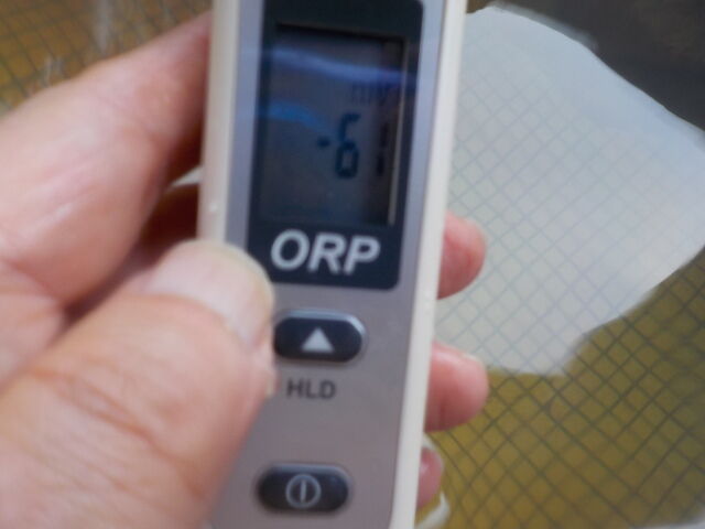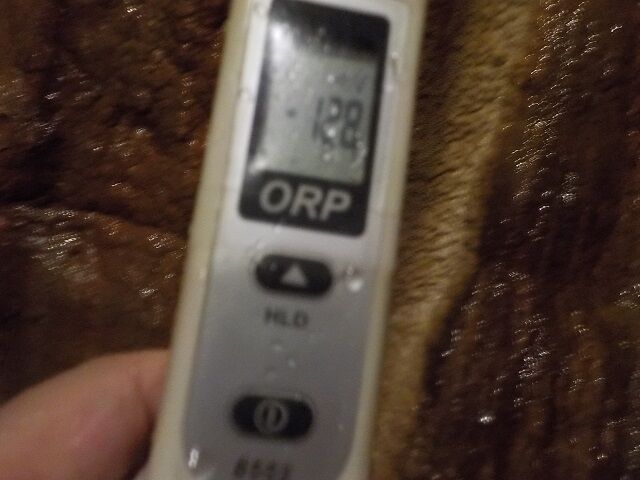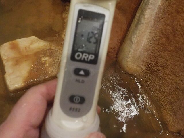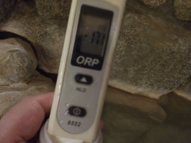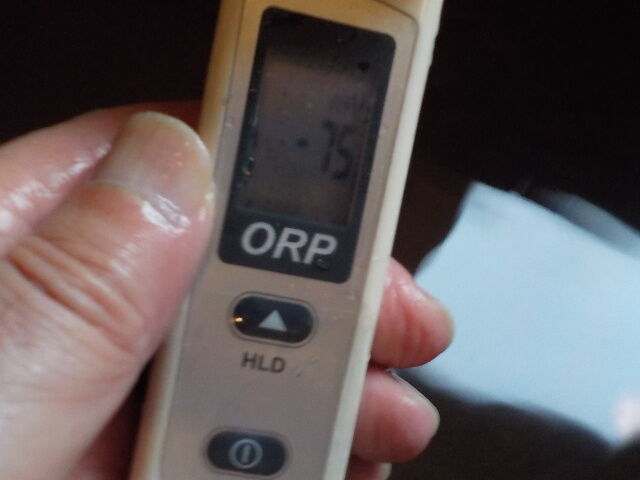 浴槽:温度36.3℃、pH7.22、ORP値は-48mvに収束した。