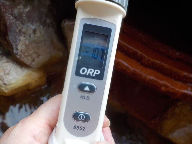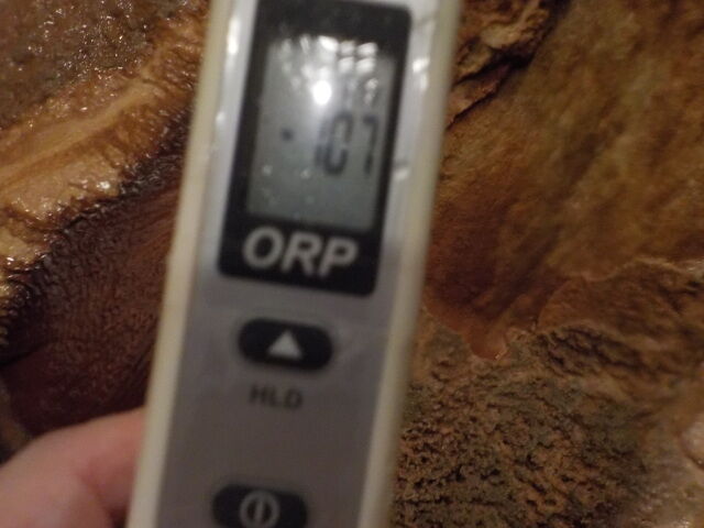 2020/10/23、15時30分~16時、浴槽内でORP計測。源泉100%掛け流しで、塩素系薬剤未使用。