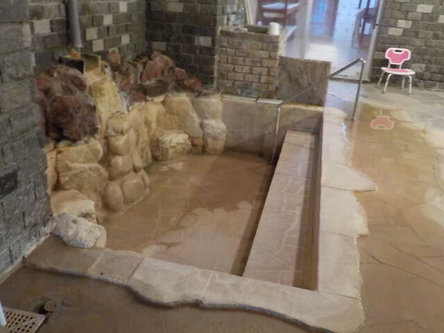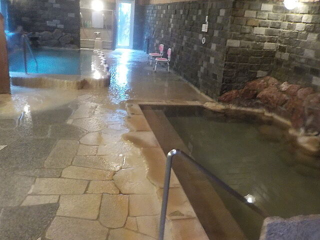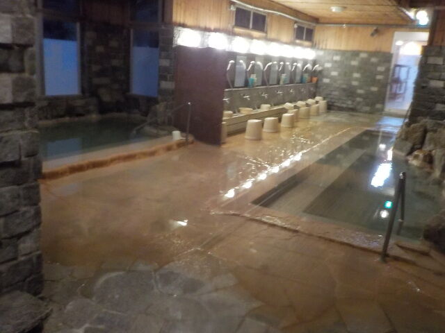 階下の内風呂は管野温泉(旧)の大浴場の名残がある。波切の湯、コンカニペの湯、シロカニペの湯、源泉槽を配置。
