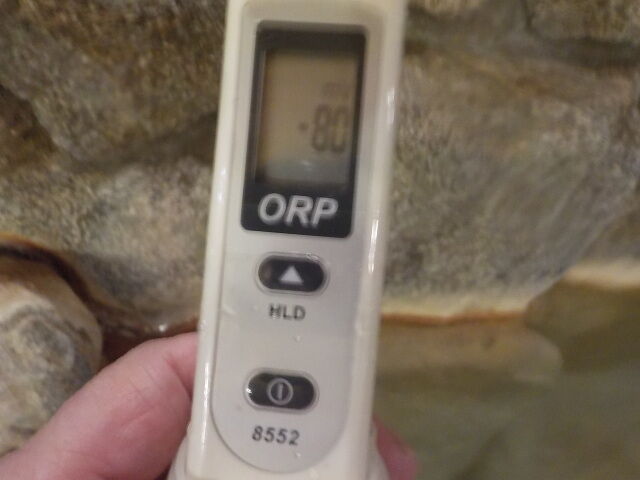 浴槽:温度41.7℃、pH8.15、ORP値は80mvに収束した。