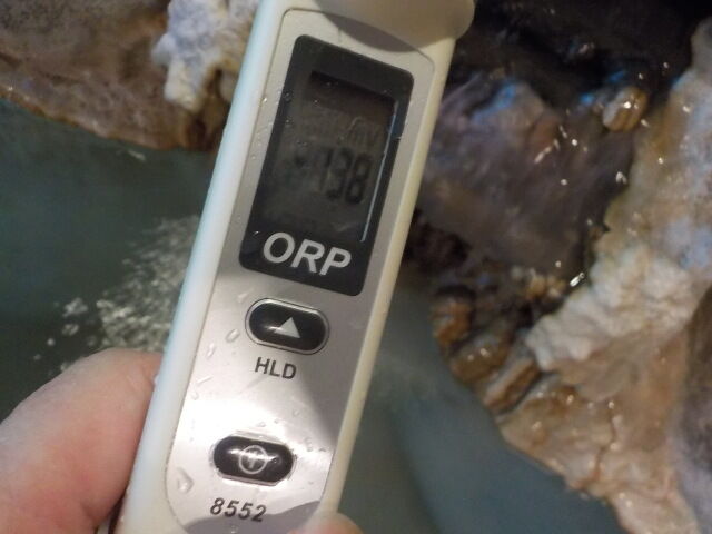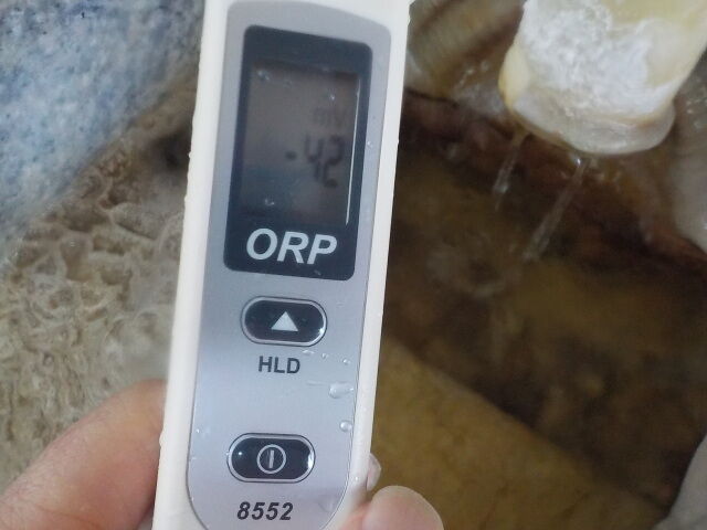 浴槽:温度42.1℃、pH7.18、ORP値は-75mvに収束した。