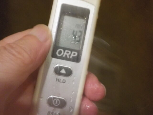 浴槽:温度43.2℃、pH7.97、ORP値は-14mvに収束した。