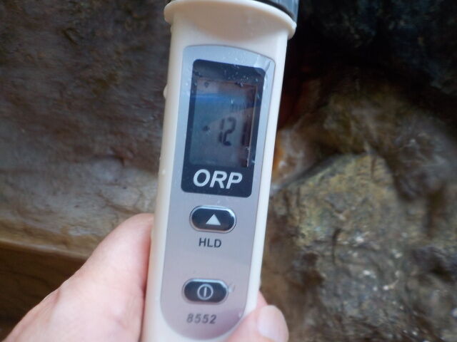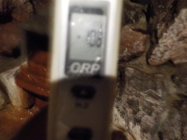 岩壁湯:温度37.1℃、pH7.98、ORP値は-128mvに収束した。