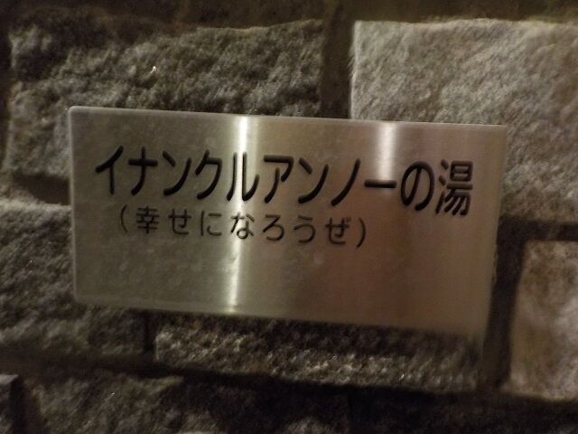 イナンクルアンノー(アイヌ語で“幸せになろうぜ”)の湯は浴室奥側にある。源泉1号利用。ほとんど無色透明の湯。注湯量は約5ℓ/分~約10ℓ/分。知覚的には、微弱硫化水素臭、微弱金気炭酸塩味。溢れた湯は湯縁からオーバーフローしている。注湯量によって湯温が変化する。つるすべ感あり。