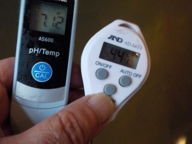 浴槽:温度44.1℃、pH7.12、ORP値は53mvに収束した。