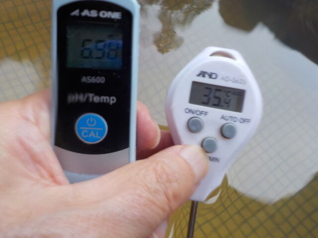 浴槽:温度35.4℃、pH6.98、ORP値は-61mvに収束した。