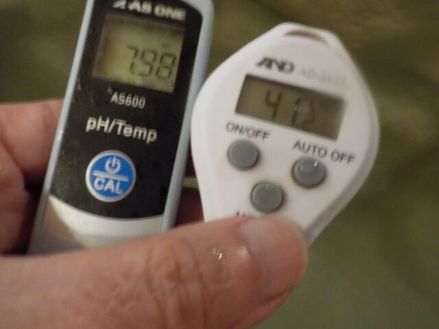 浴槽:温度41.9℃、pH7.93、ORP値は-62mvに収束した。