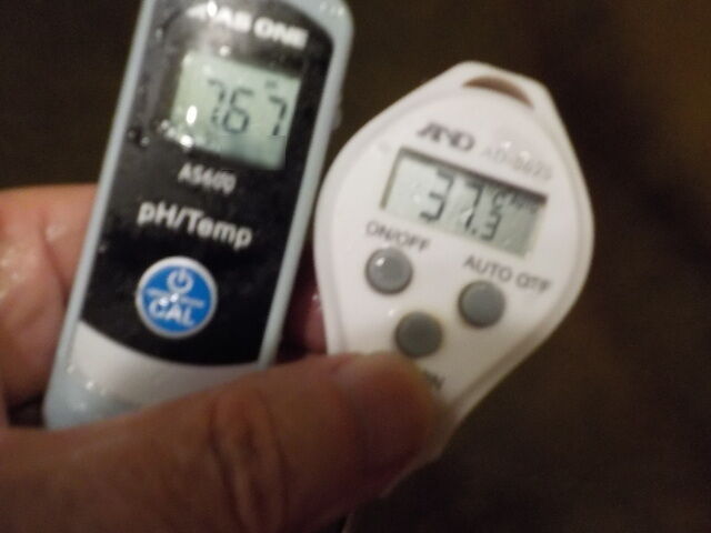 浴槽:温度37.3℃、pH7.67、ORP値は43mvに収束した。