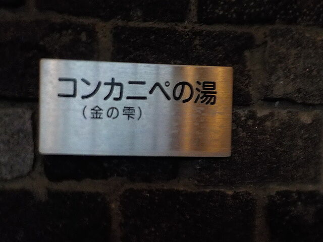 アイヌ語で金の雫を意味するコンカニペの湯(旧えびすの湯)。源泉2号利用。岩肌から源泉が自然湧出している。溢れた湯は湯縁からオーバーフローしている。以前は打たせ湯が落水していたが休止している。
