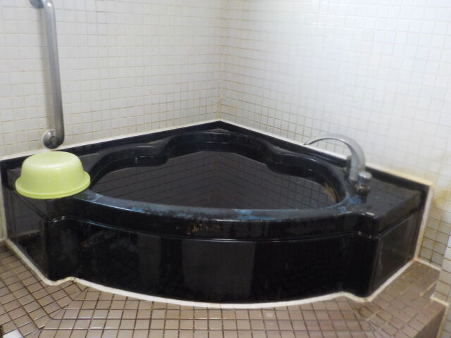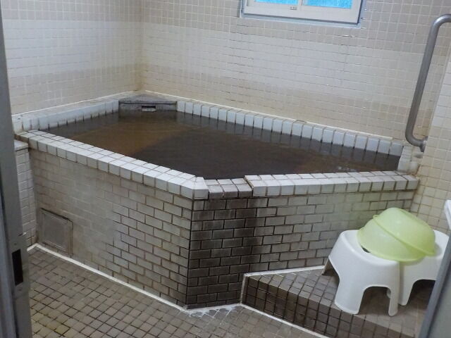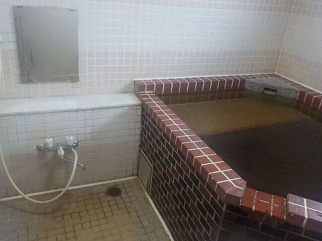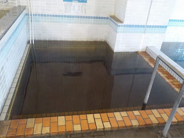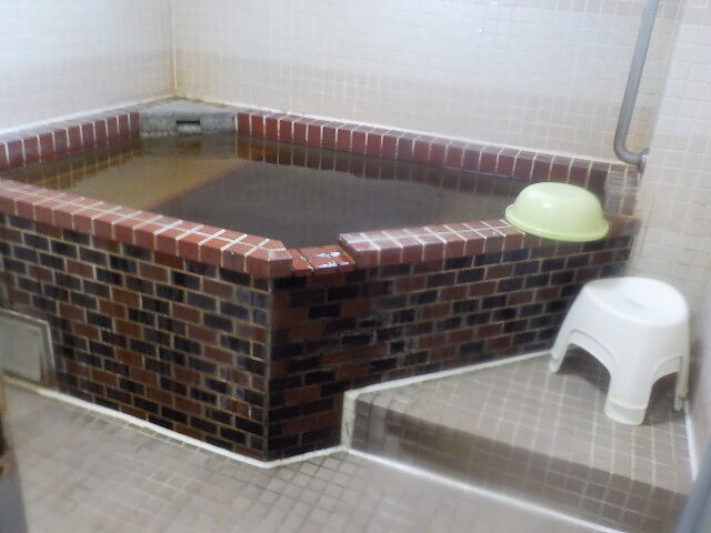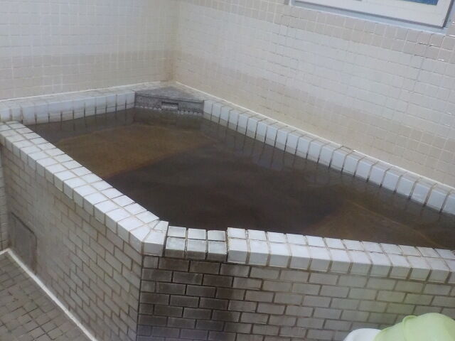 ウーロン茶色半透明の湯。湯蛇口と加水蛇口あり。注湯量は約10ℓ/分。知覚的にはほとんど無臭・微弱塩味。溢れた湯は湯縁からオーバーフローしている。適温でぬるりとした浴感あり。