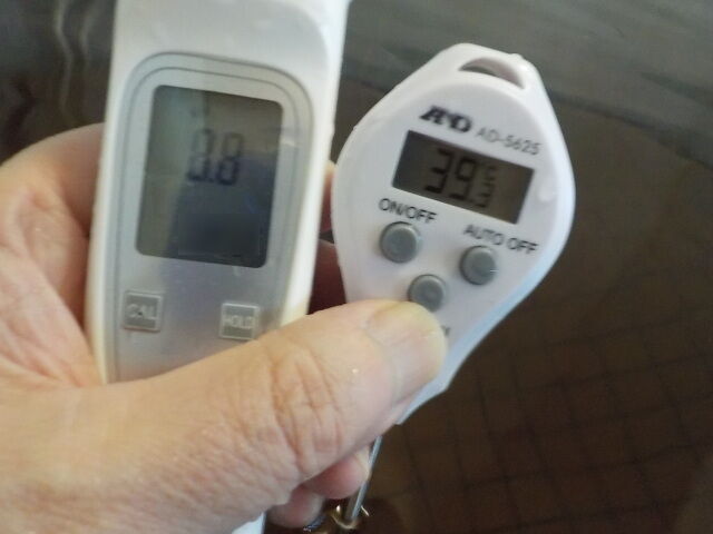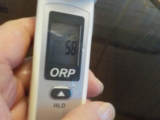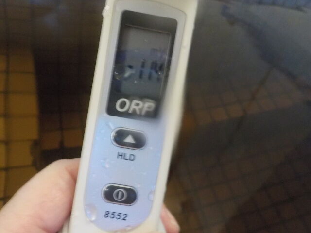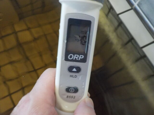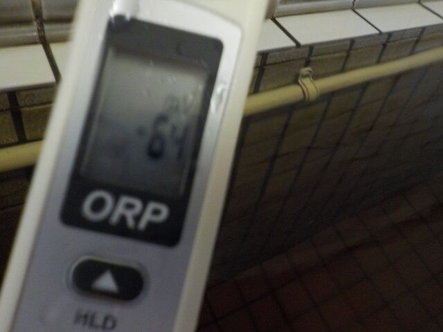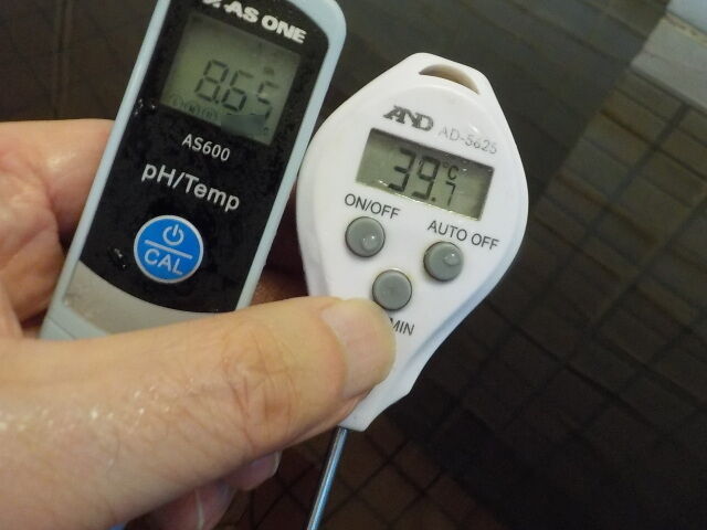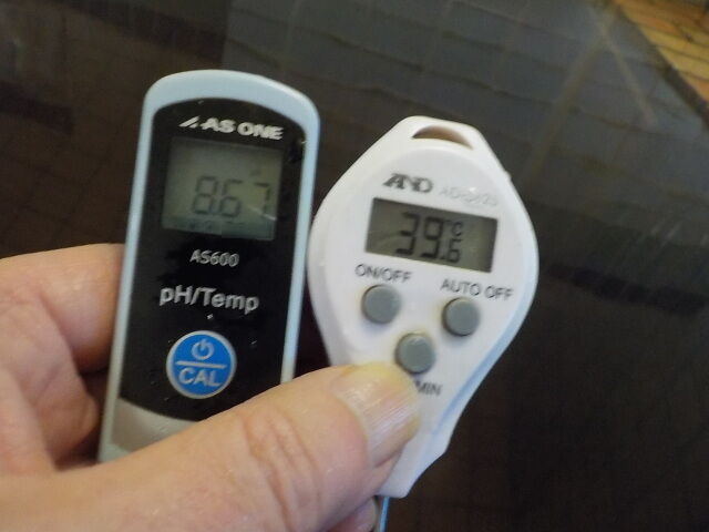 浴槽:温度39.6℃、pH8.67、ORP値は58mvに収束した。