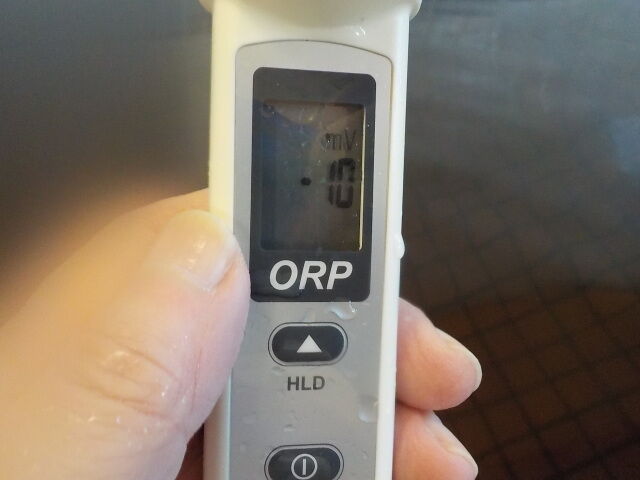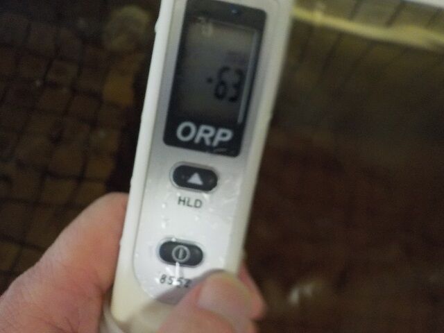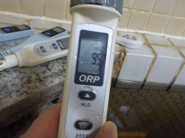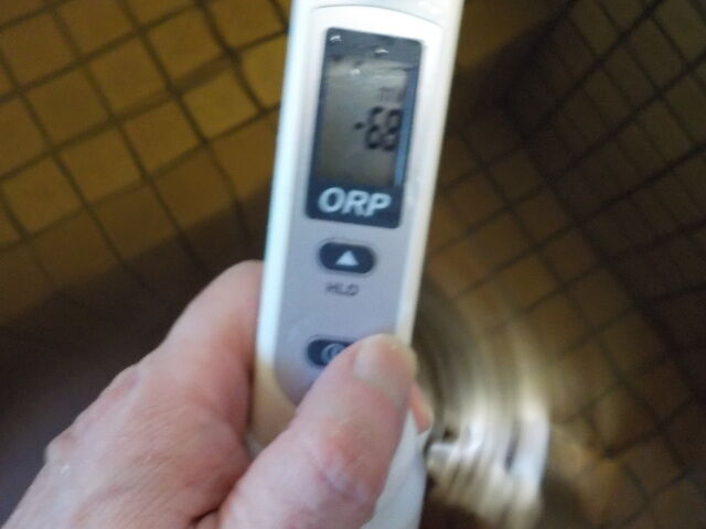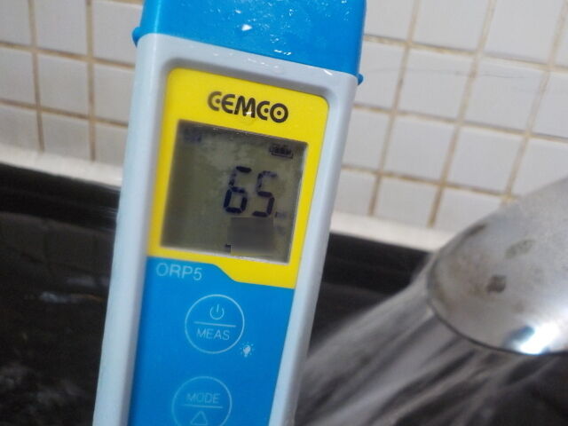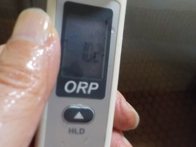 浴槽:温度39.7℃、pH8.65、ORP値は-47mvに収束した。