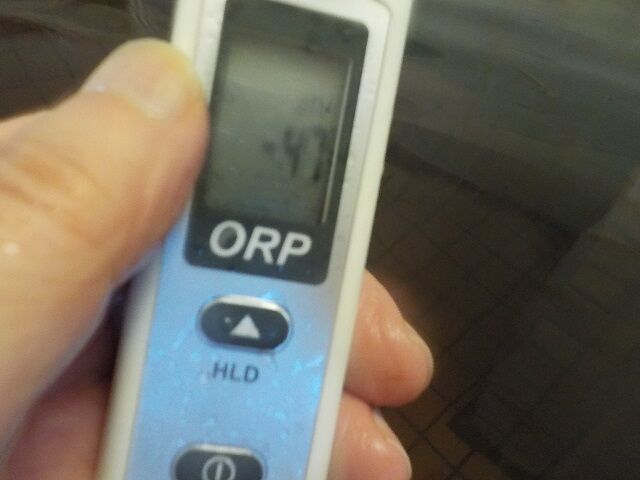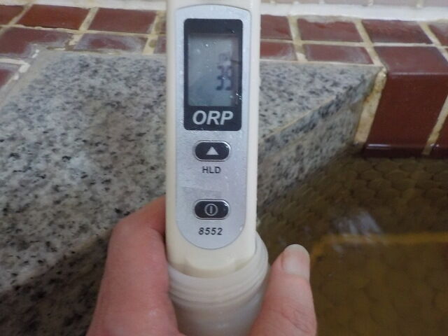 浴槽:温度41.8℃、pH8.83、ORP値は62mvに収束した。