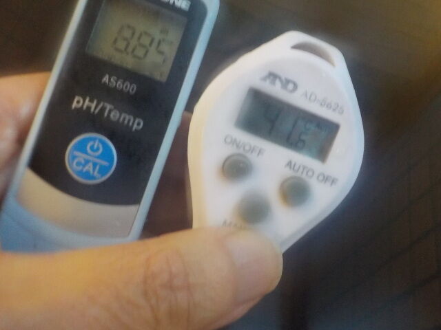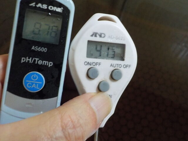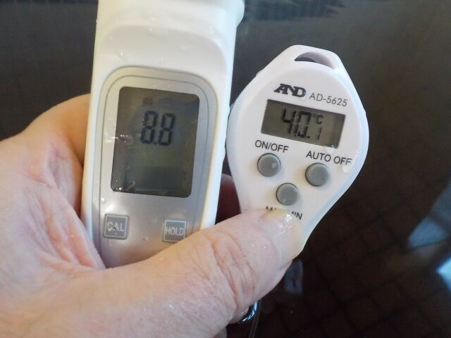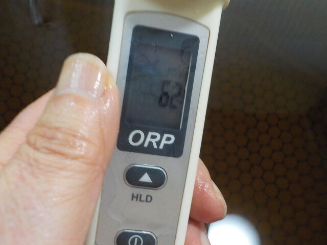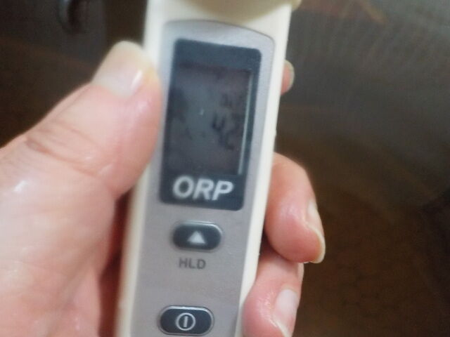 浴槽:温度41.7℃、pH8.78、ORP値は62mvに収束した。