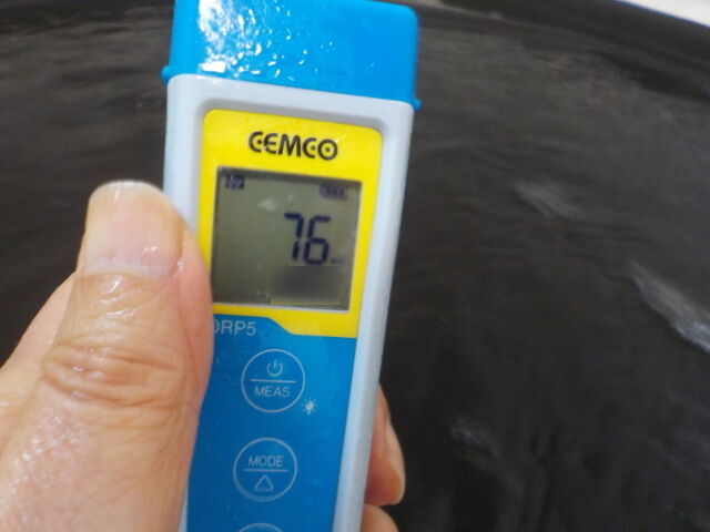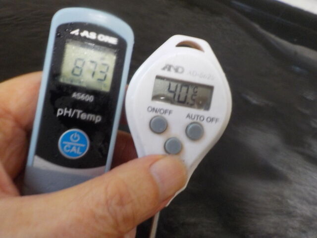 浴槽:温度40.5℃、pH8.73、ORP値は76mvに収束した。