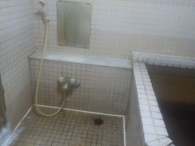 浴室は一般家庭の浴室より心持ち広い。洗い場にはシャワー付カランが1台、シャンプー類は置いていないので各自用意。