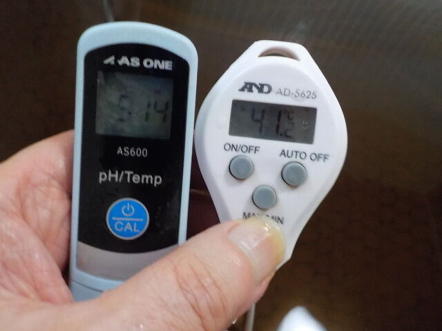 浴槽:温度41.2℃、pH9.14、ORP値は42mvに収束した。