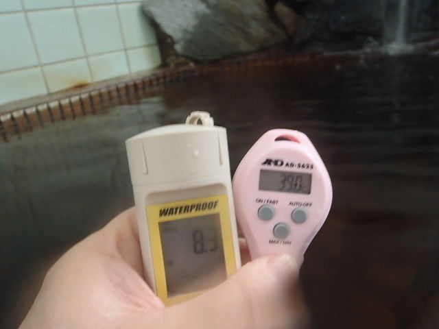 湯口:温度40.8℃、pH8.16、ORP値は-358mvに収束した。