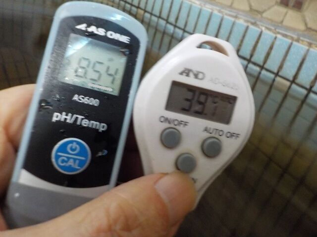 浴槽:温度39.1℃,pH8.54、ORP値は-107mvに収束した。