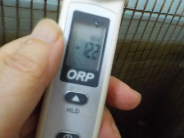 浴槽:温度40.2℃,pH8.46、ORP値は15mvに収束した。