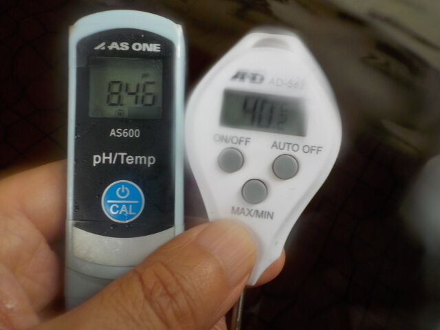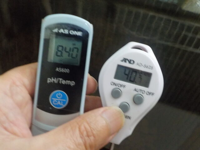 浴槽:温度40.7℃,pH8.40、ORP値は-53mvに収束した。